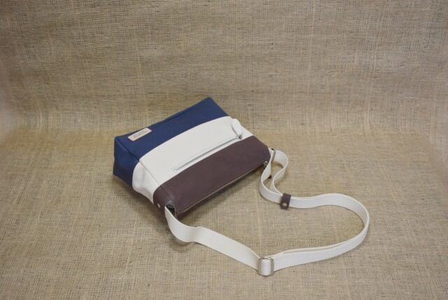 キャンバス トリコロール・ショルダーバッグ(チョコ×生成×ネイビー)ー受注生産品ー